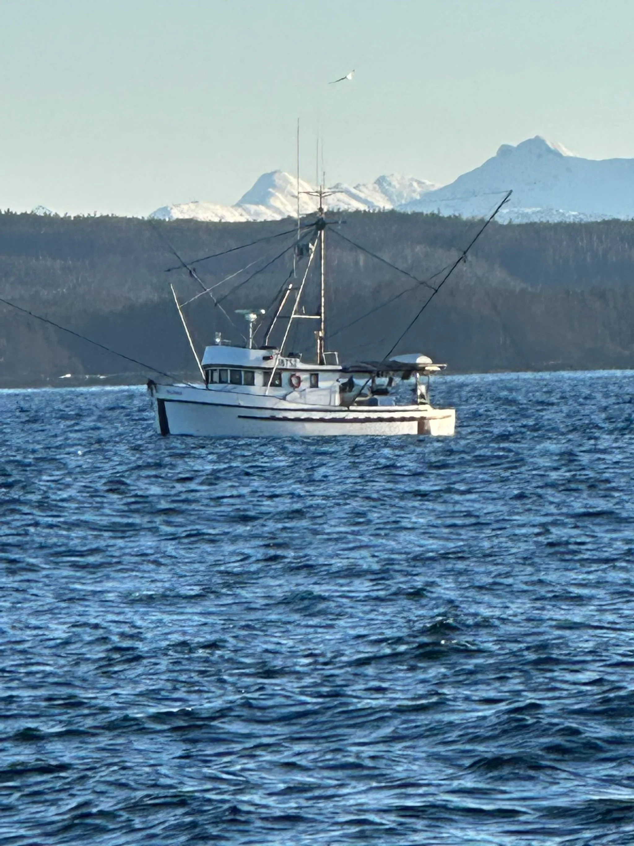 Photo of the Aloma, on the fishing grounds, winter 2025. A 48ft Wooden Power Troller, built by Norman Mills in 1943 in Friday Harbor, WA. It’s rare to see a double-ender this large. We originally thought Norman Mills had commissioned Jensen’s Shipyard to build the boat. However a good friend of mine found the Master Carpenter Certificate for the Aloma, signed by Norman Mills, certifying that he in fact built the Aloma himself! Luke and I are only the 5th set of owners to fish Aloma since the time the boat was built, as Aloma spent the last 40 plus years being run by the same family. Luke and I take the caretaker role of this piece of living history seriously, and look forward to making memories aboard her decks for many years to come.